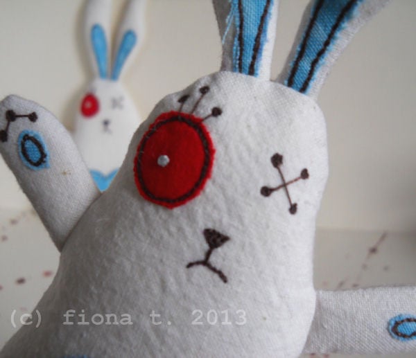 they’re made from heavy weight calico, and backed with medium weight calico. i pre-wash all my fabrics so they’re soft and shouldn’t shrink – although i wouldn’t recommend putting these rabbits in a washing machine.