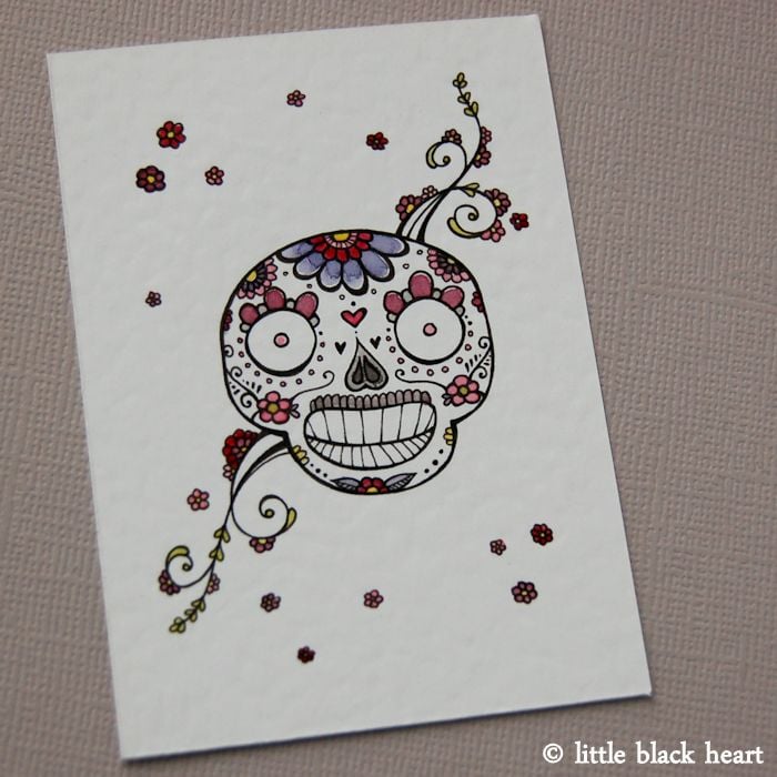 original artwork in artists pens and watercolour paints, on textured white 300gsm cardstock.
