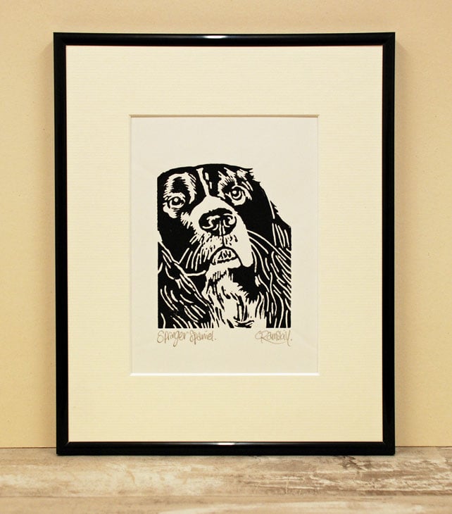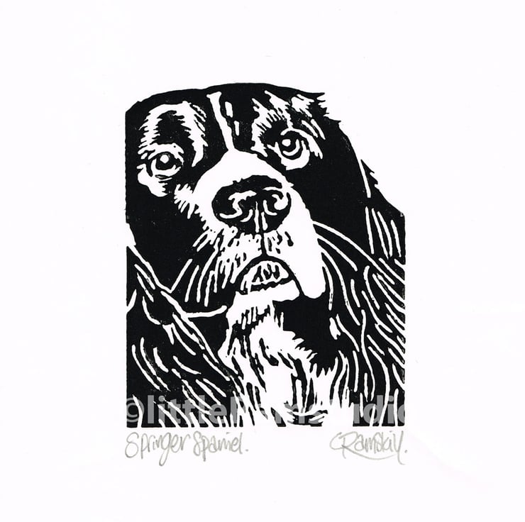 'Springer Spaniel Dog' - Original, hand pulled Linocut Print, printed on hand press in black ink. Signed and titled in pencil by the artist.