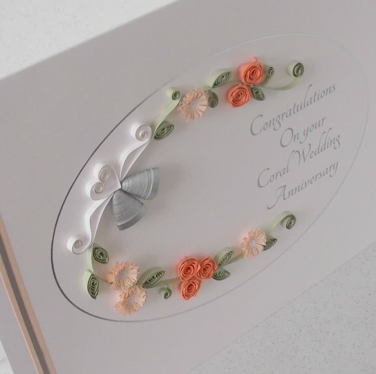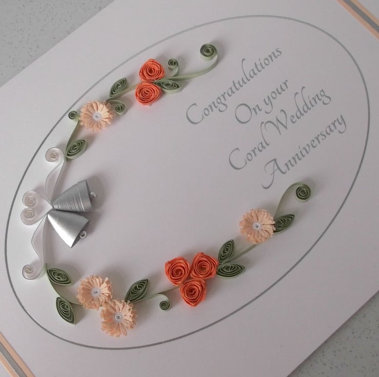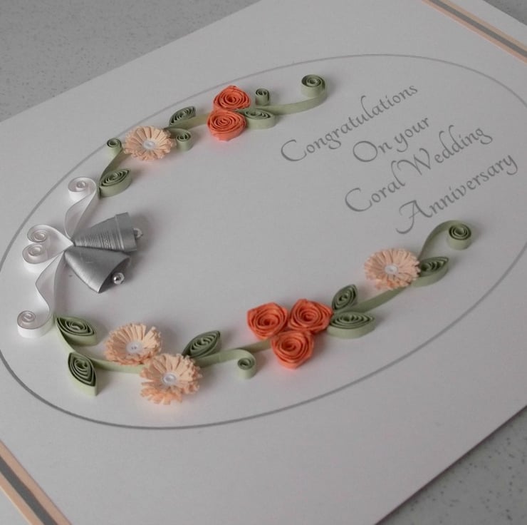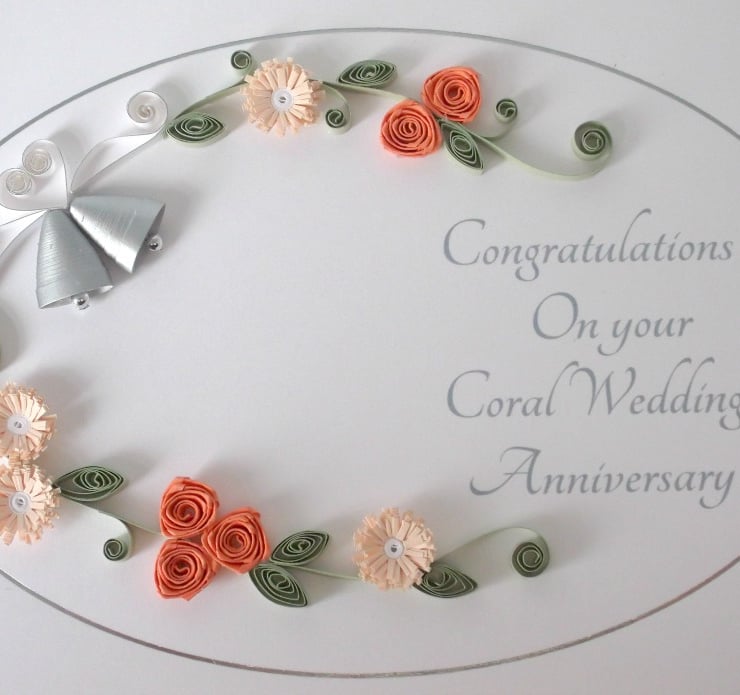 Coral 35th wedding anniversary congratulations card with paper quilling