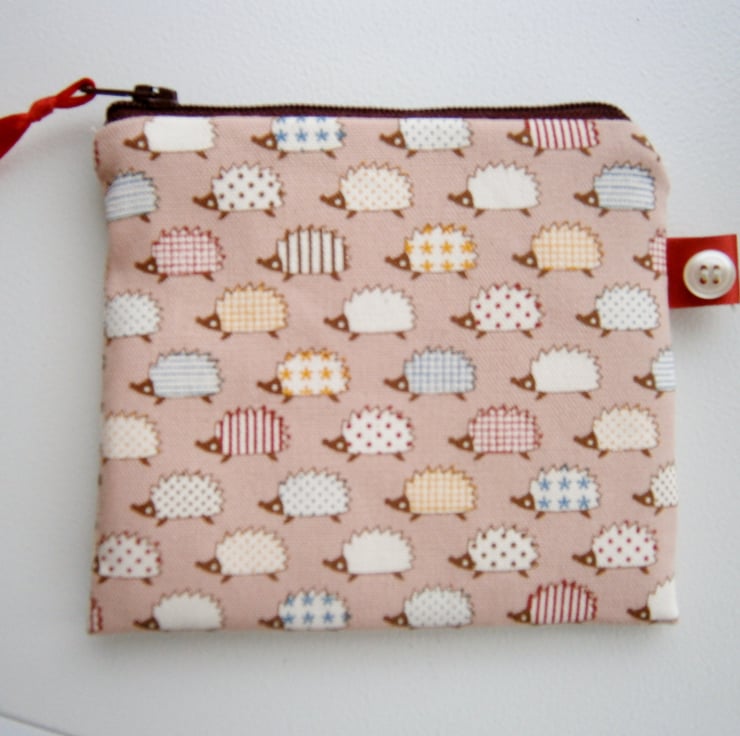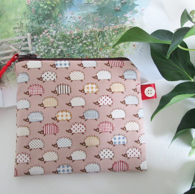 Pretty little hedgehogs printed fabric coin purse, perfect for your coins, notes and cards.