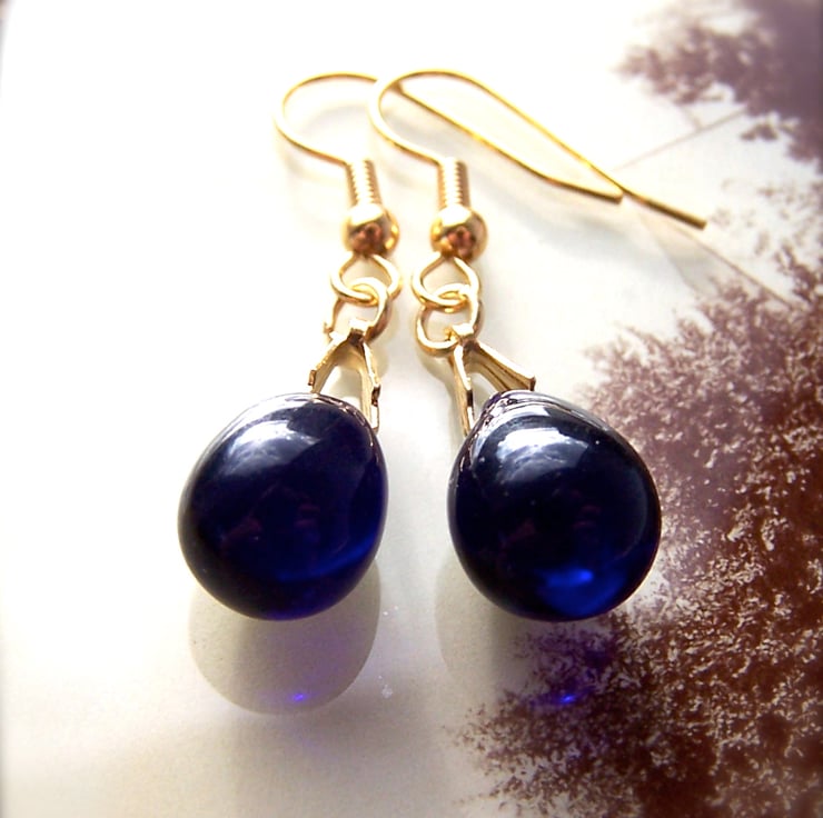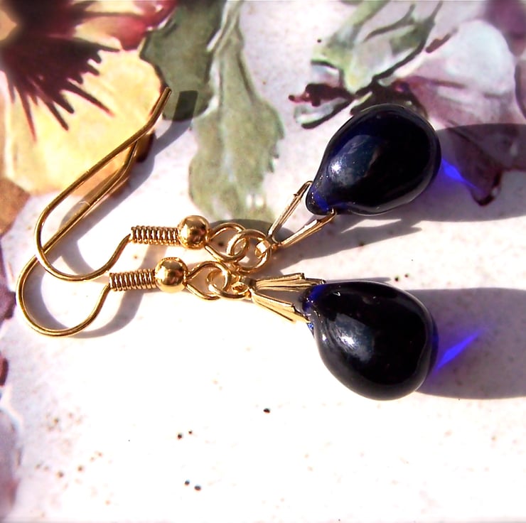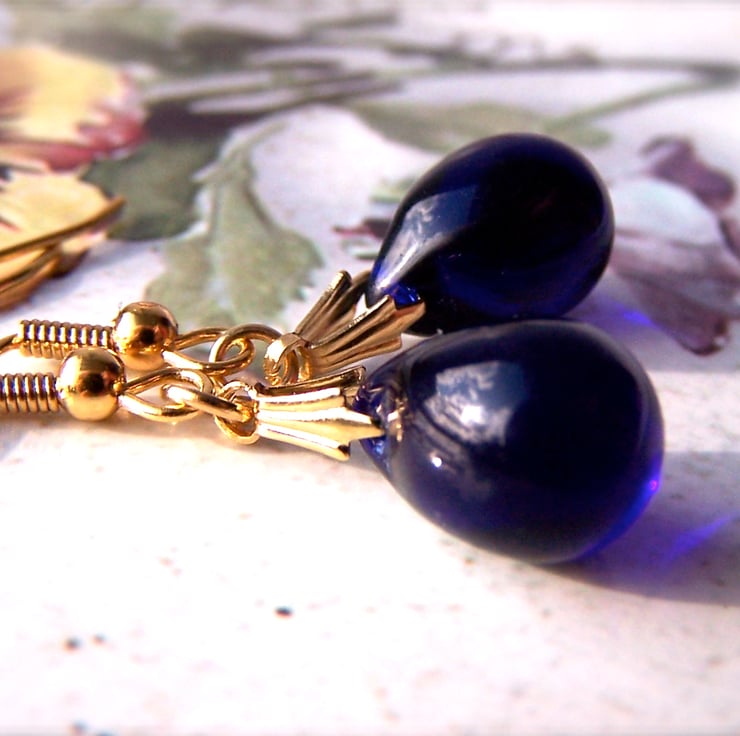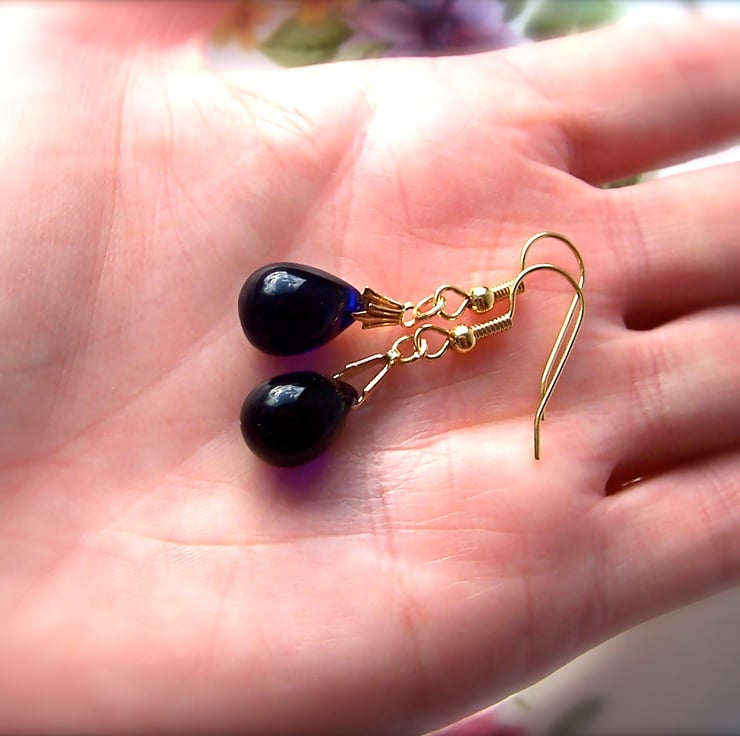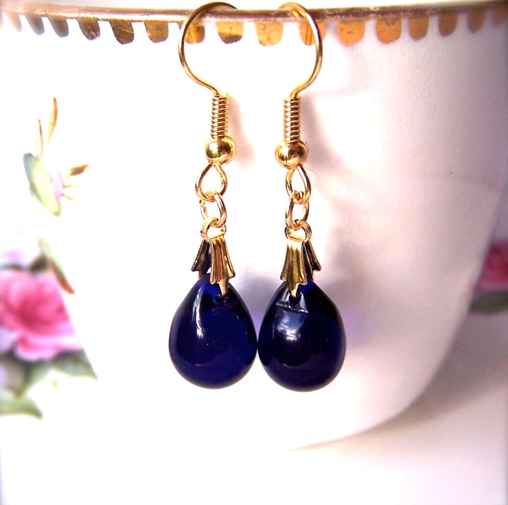 Classically elegant dark blue earrings, featuring deep indigo blue teardrop beads. These little drop earrings are elegant and versatile.