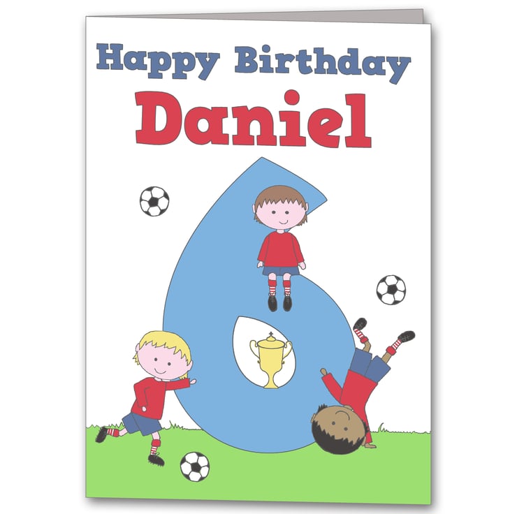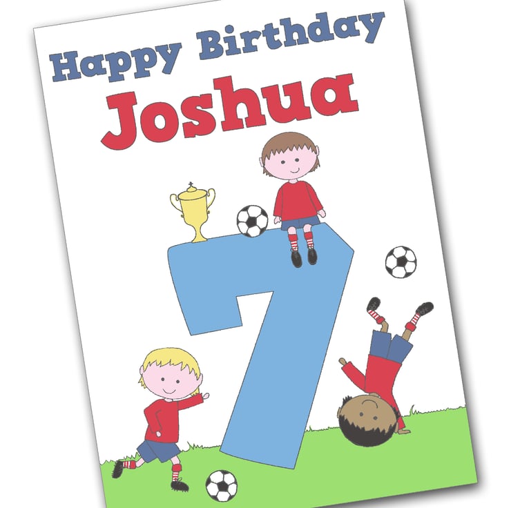 Make a boys birthday even more special with his own personalised football birthday card. It is designed to order so it features the birthday boy's own name and age. Kids love to see their name in print so it will be sure to make his day!
