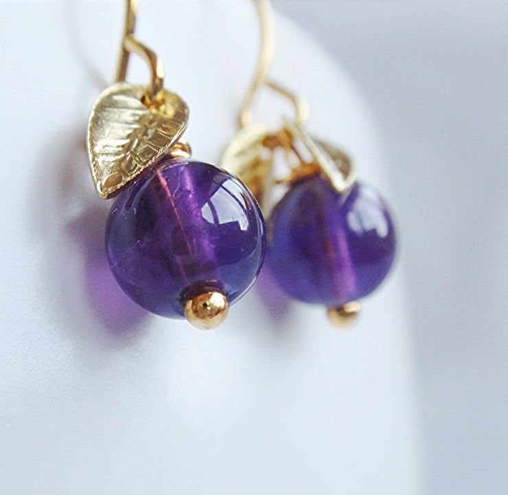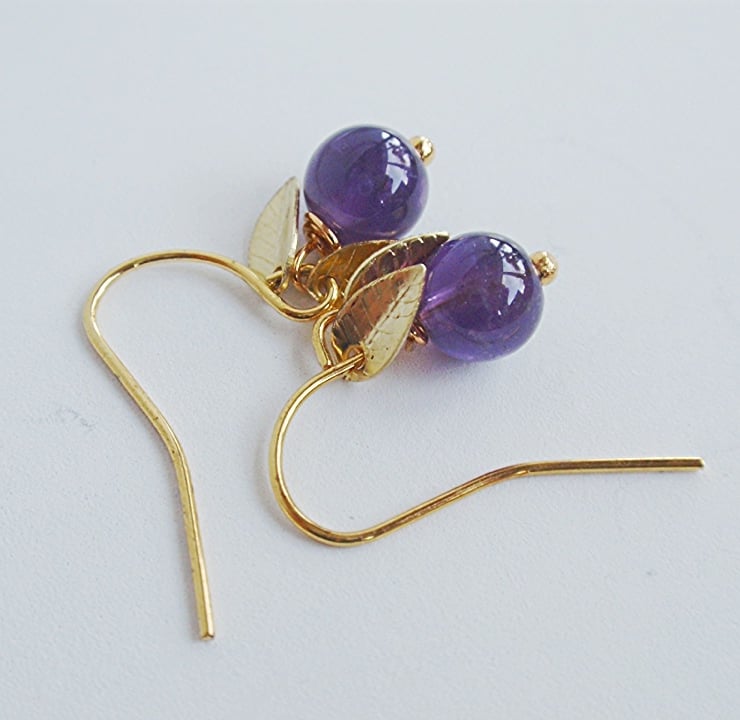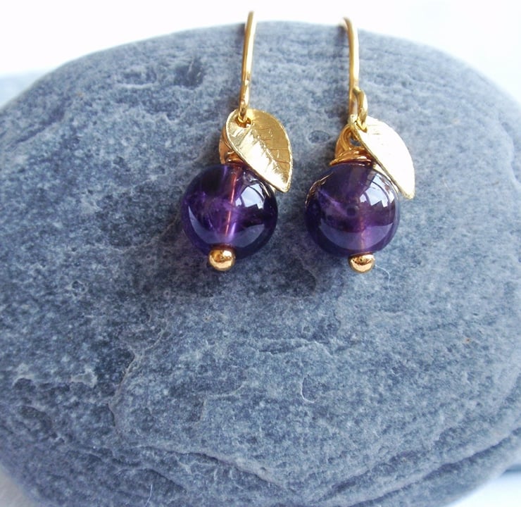 Purple Amethyst and gold leaf earringsin a classic vintage style.