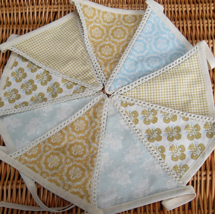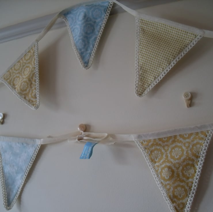 The bunting would look beautiful in any room, on the wall, over a fireplace or in a window and would make a charming House warming gift or New Baby gift.