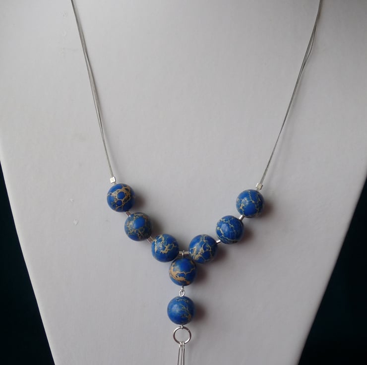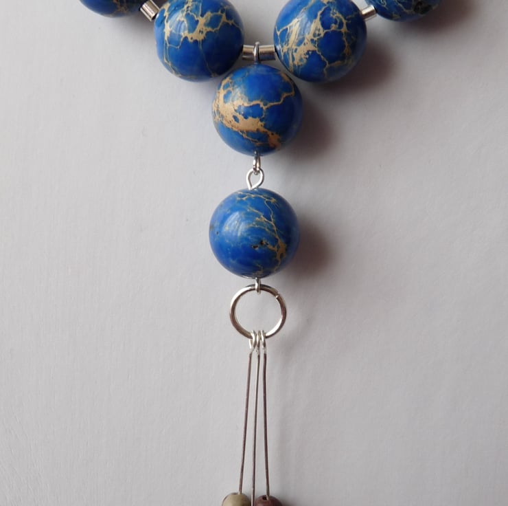 It has been made with 14mm blue imperial jasper rounds and 4mm picture jasper rounds.