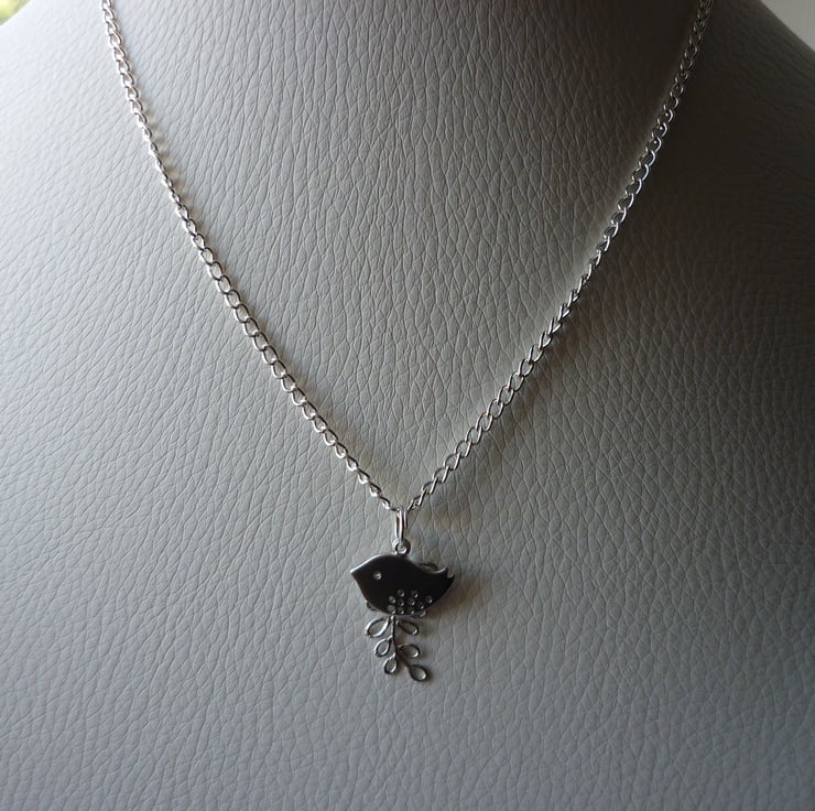 THE NECKLACE HAS BEEN MADE WITH FINE SILVER PLATED CURB CHAIN, WHICH HAS A CUTE LITTLE SILVER PLATED BIRD AND A PRETTY LITTLE FANCY LEAF HUNG OF THE CHAIN AND FINISHED WITH SILVER PLATED LOBSTER CLASP AND FINDINGS.