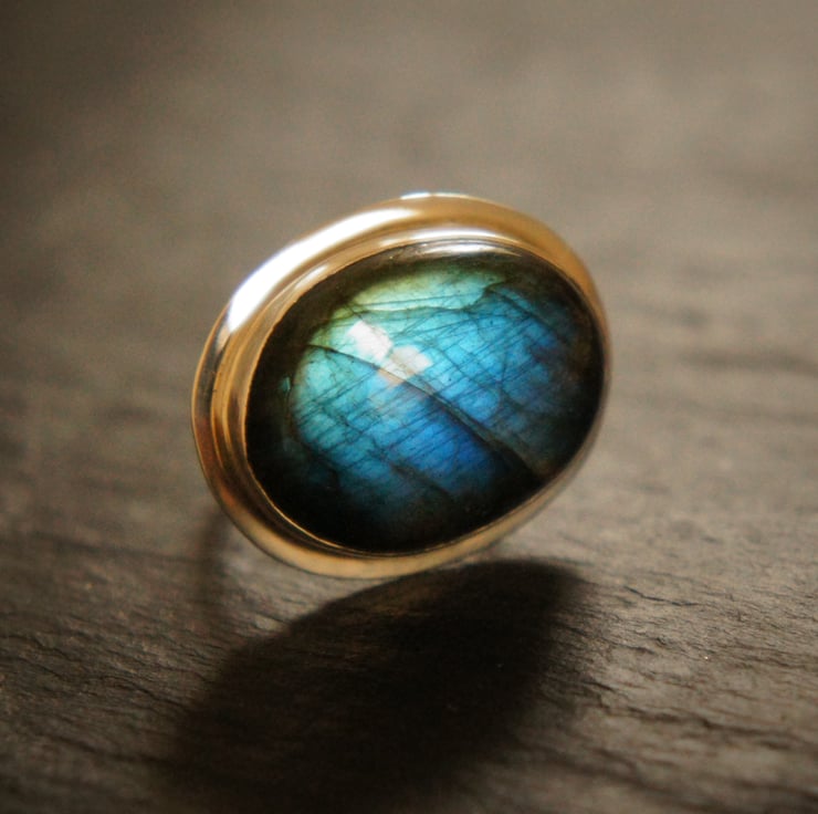 A Labradorite oval shape, sterling silver ring. This stone has amazing blue flash.
