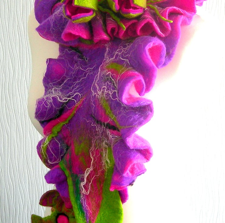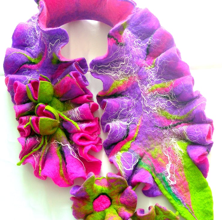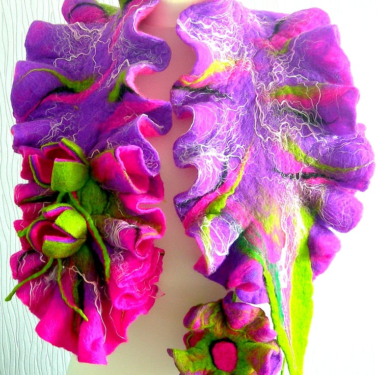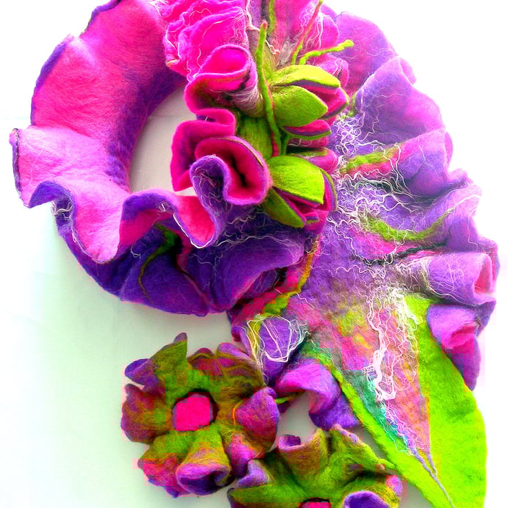 Hand Felted, Wool Jewelry scarf-100% WOOL MERINO