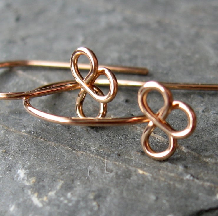 Beautifully finished handmade bronze wire earwires with a trefoil design, each one approximately 17mm from top of earwire to bottom of trefoil. Made from 0.71mm wire with smoothed ends to ensure comfort when wearing. They are carefully made and shaped by hand, filed and polished, hammered and tumbled for strength and shine.