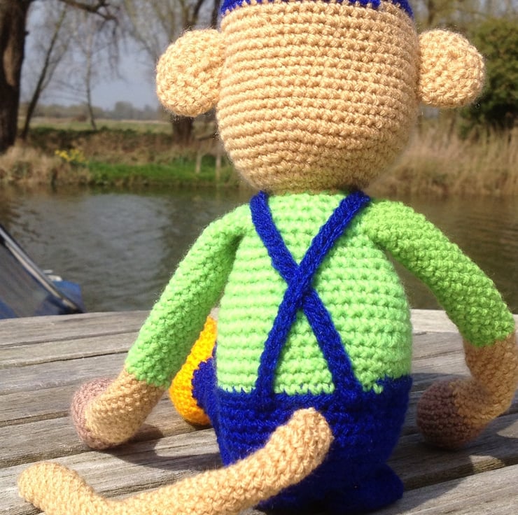 He is hand crocheted and has safety eyes, so is not suitable for babies.