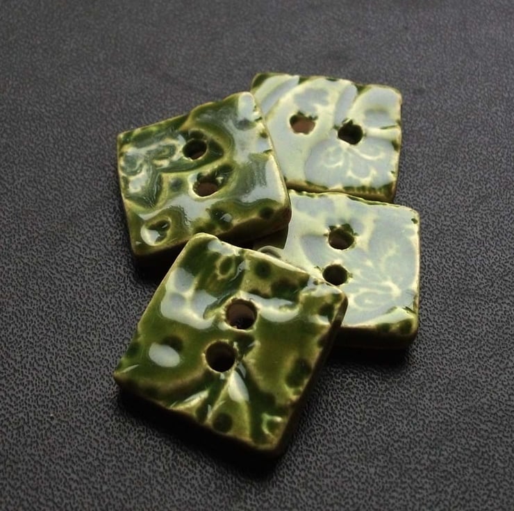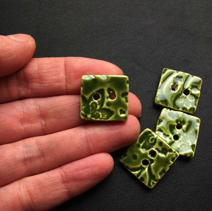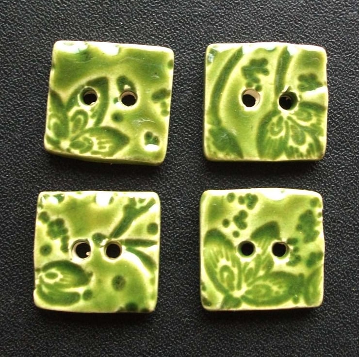 This little set of four ceramic buttons are made from white earthenware clay and embossed with a leafy print.