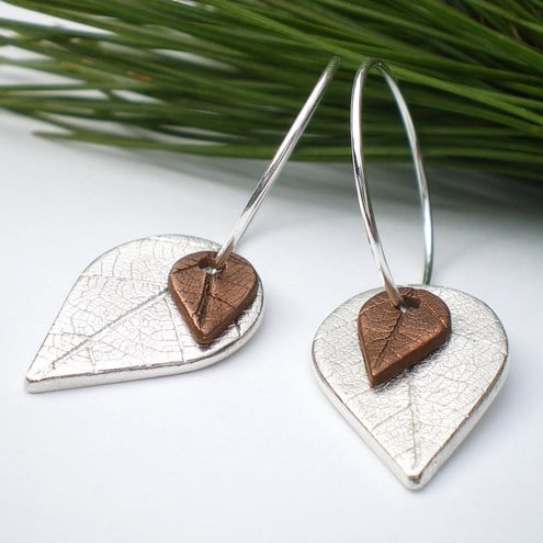 Three pairs of earrings in one, you can wear as pictured with both fine silver and copper leaves, or with the silver or copper individually!