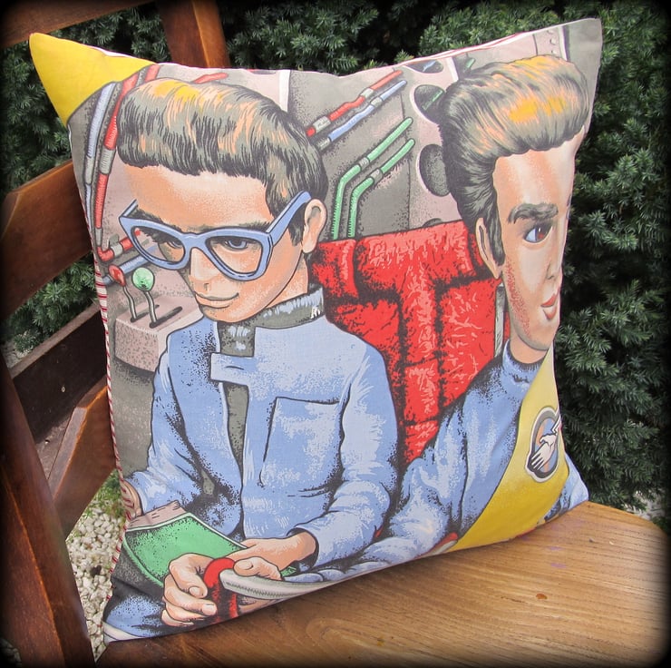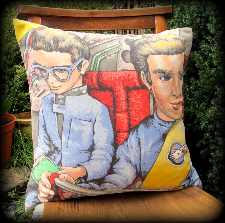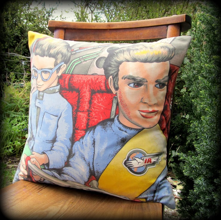 This is a retro cushion, featuring Thunderbirds.