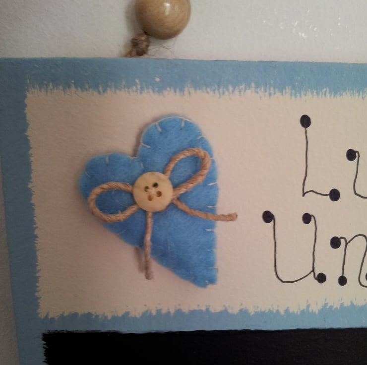 Has a little hand stitched felt heart and chalk bag both with button detail.