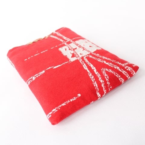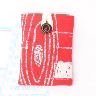 This is a kindle case made using an original vintage fabric that consists of a bright red and white abstract pattern, reminiscent of tree rings. This vintage material dates to the 1950s, being a 100% cotton and is in very good condition. It is lined and padded inside for extra protection with a light cream cotton modern material.
