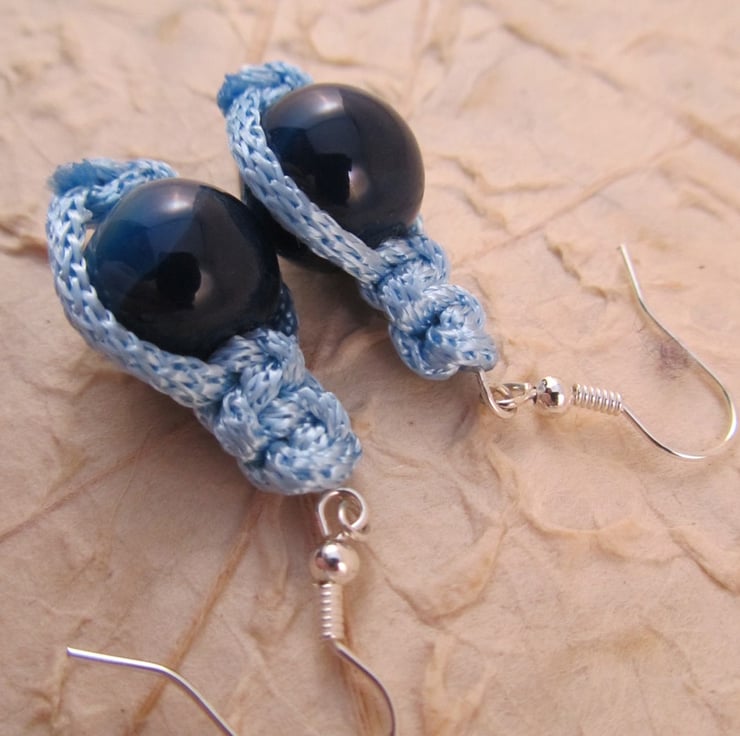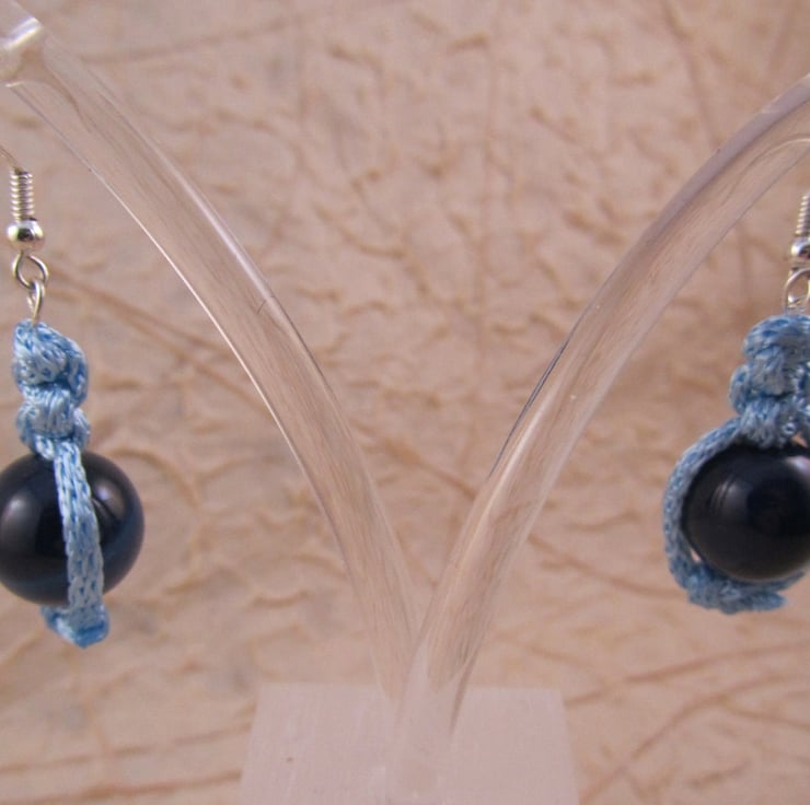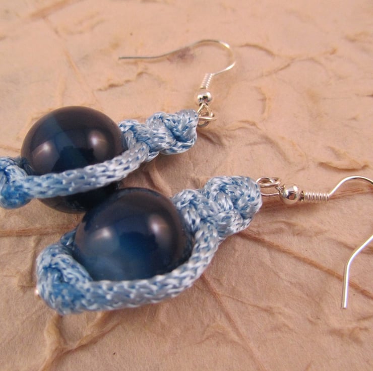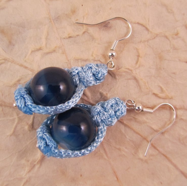 I had made a macrame bracelet with these materials and wanted earrings to match. After some experimentation I came up with these pretty dark blue agate macrame earrings.
