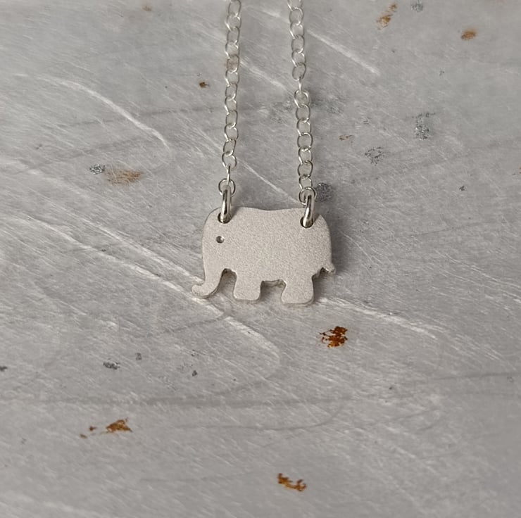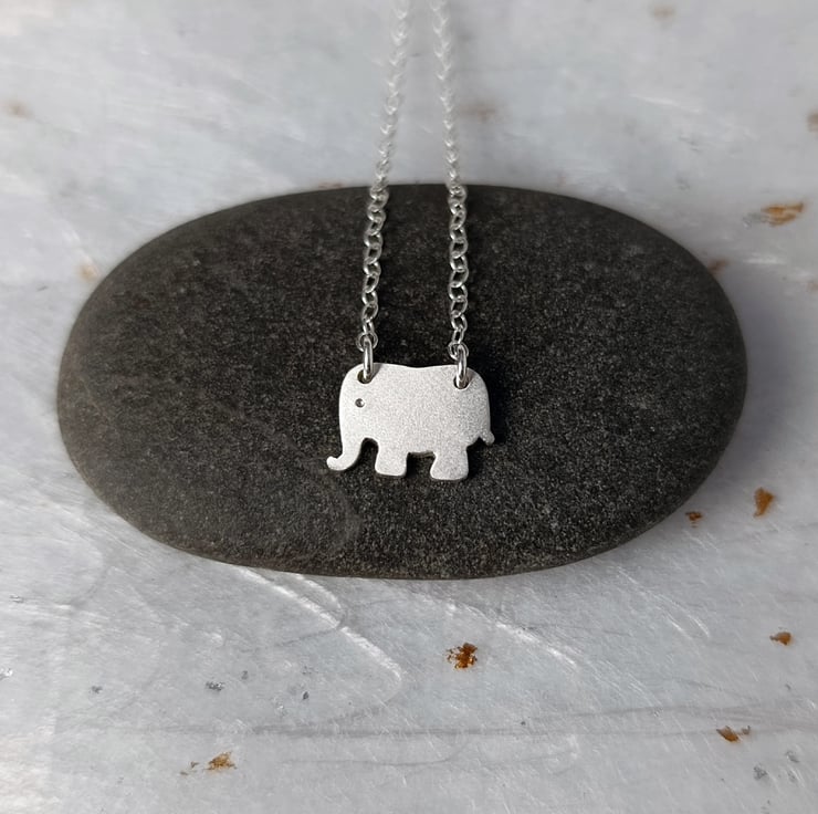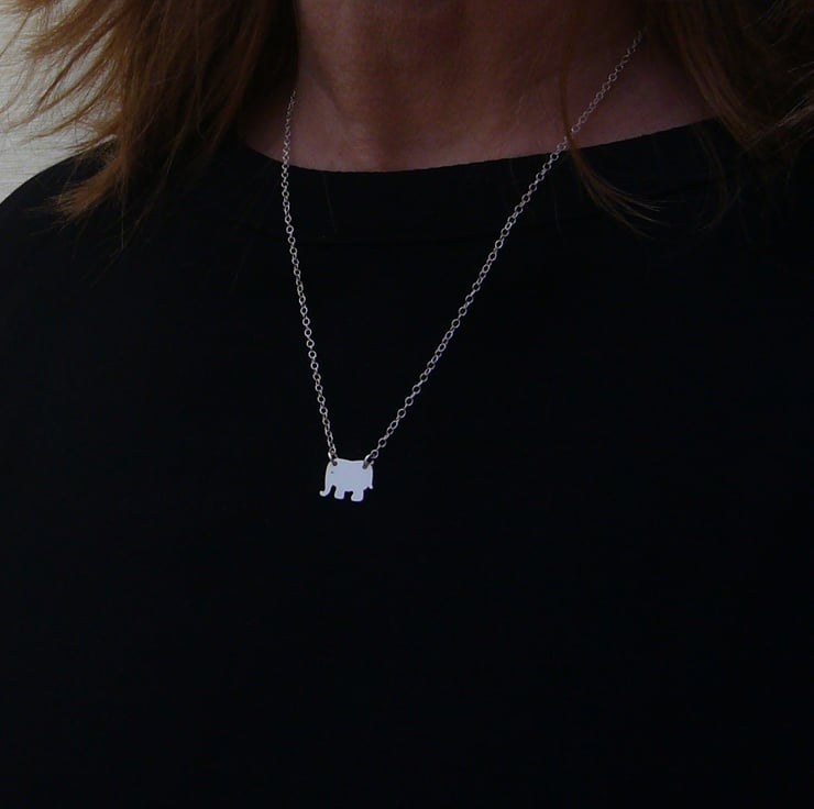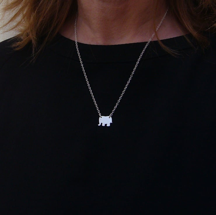 I have made this elephant necklace by cutting recycled sterling silver by hand. After filing and finishing, it was attached to a sterling silver chain. It is part of a collection of animal jewellery, which includes matching elephant earrings.