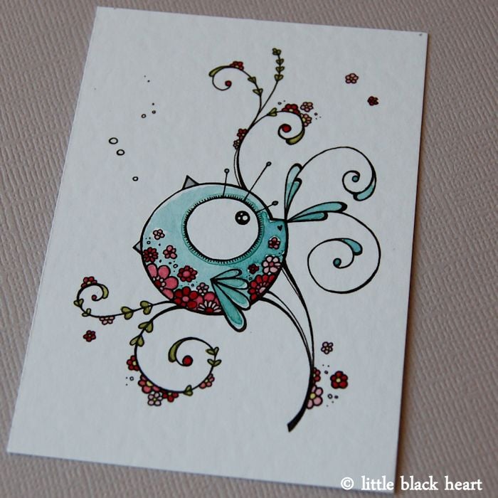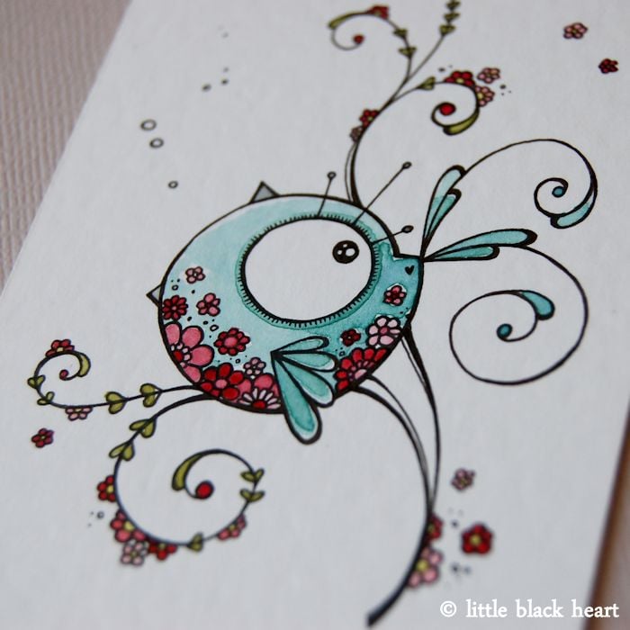 drawn in fine detail with a tiny 0.05 nibbed art pen, and carefully painted with just the very tip of a tiny paintbrush!