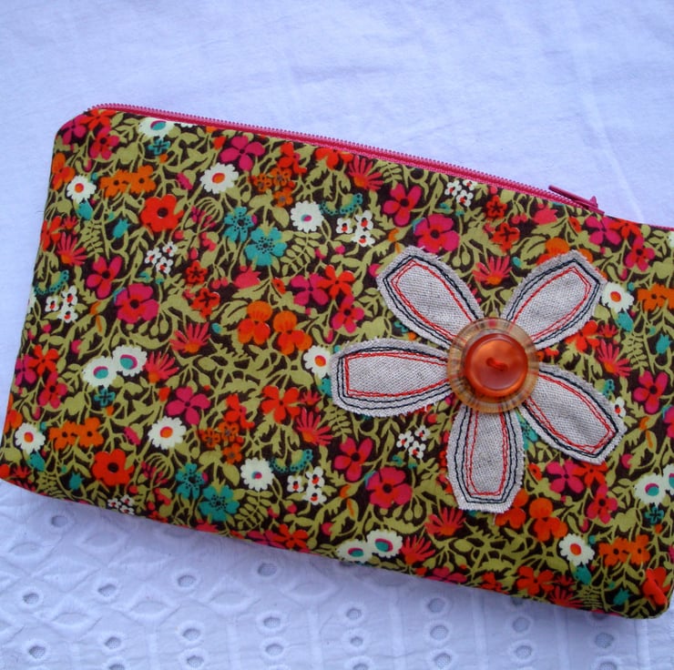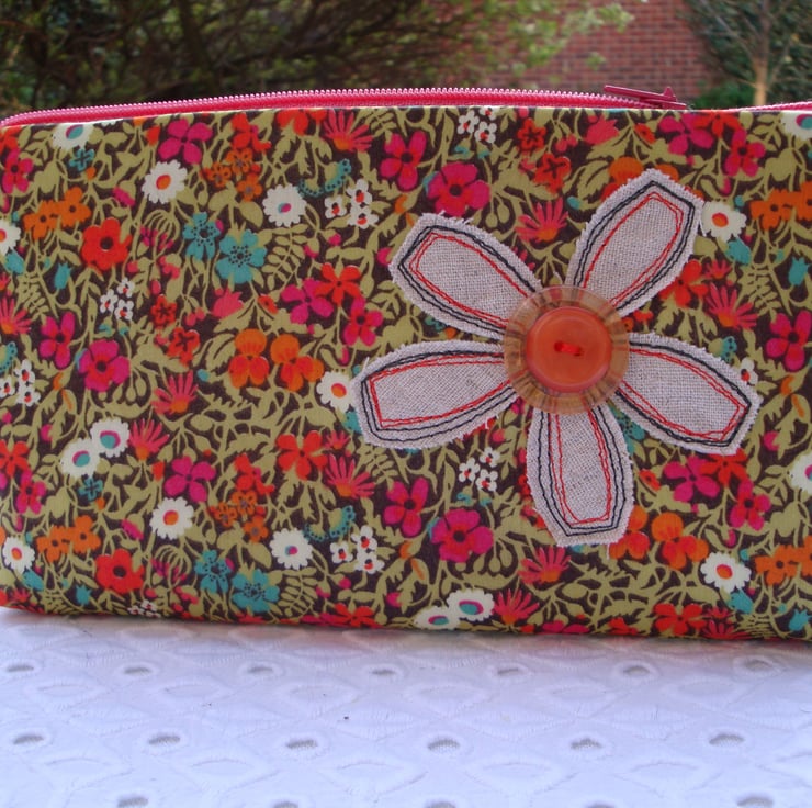 Lovely make up bag - made in a pretty Liberty cotton print fabric . Bag is big enough for all your daily beauty essentials - can also be used as a pencil case - sewing purse - etc.