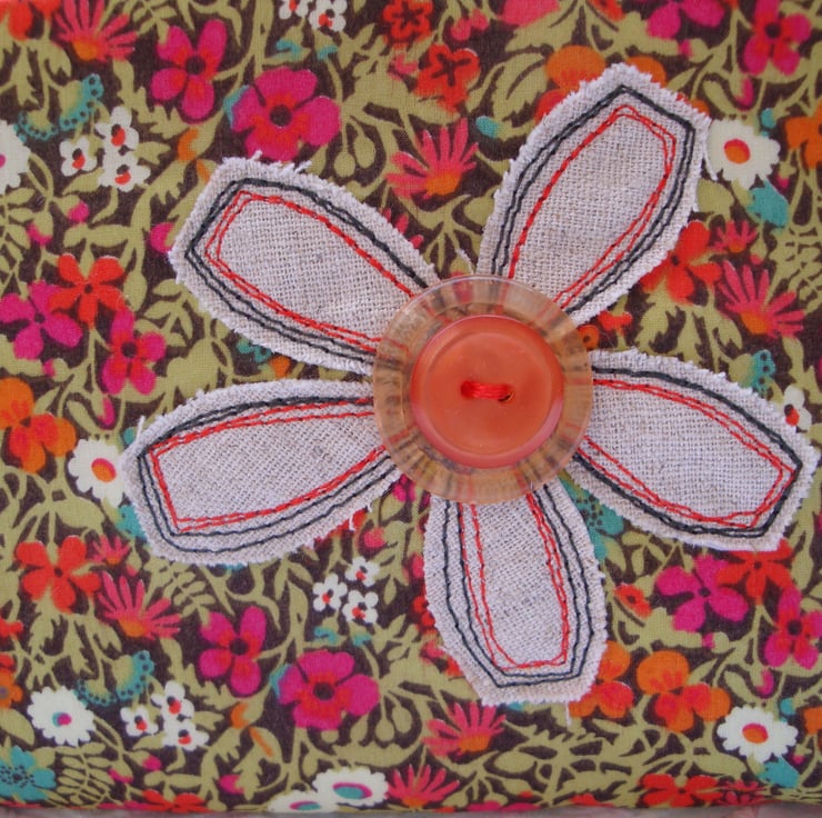 I appliquéd a linen flower to the front of bag - embellished with buttons.