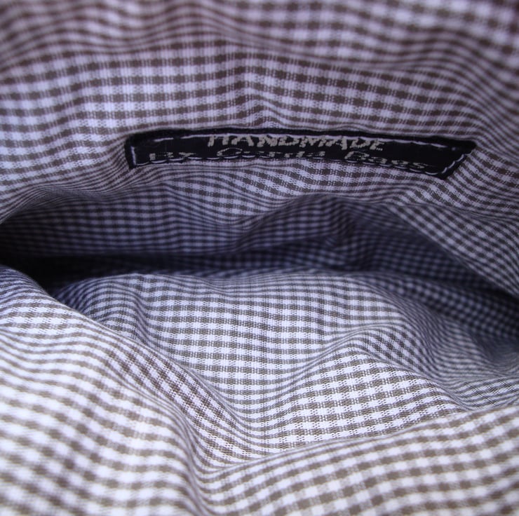 Bag is fully lined in a waterproof fabric ( see photo ) and has been lightly padded for body and strength. Rose coloured zip across the top.