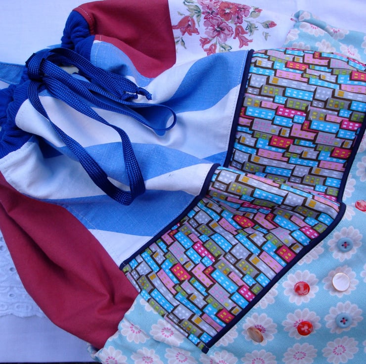 SALE Patchwork Craft storage bag  -  strap  -  crochet - knitting  - sewing .