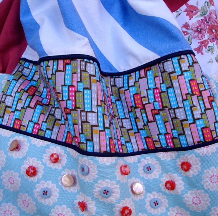 External is made in patchwork , using various cotton fabrics . Embellished with buttons on the front.