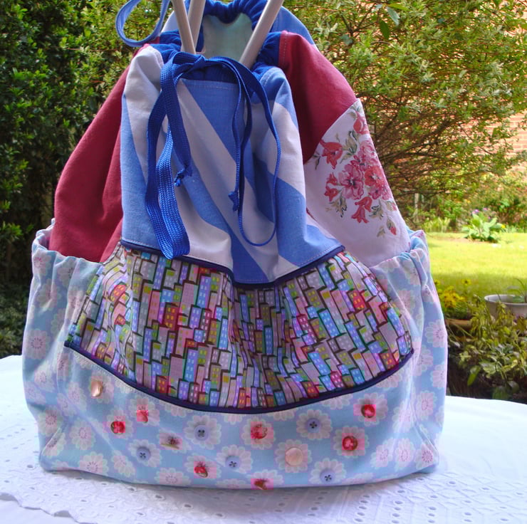 SALE Patchwork Craft storage bag - strap - crochet - knitting - sewing .