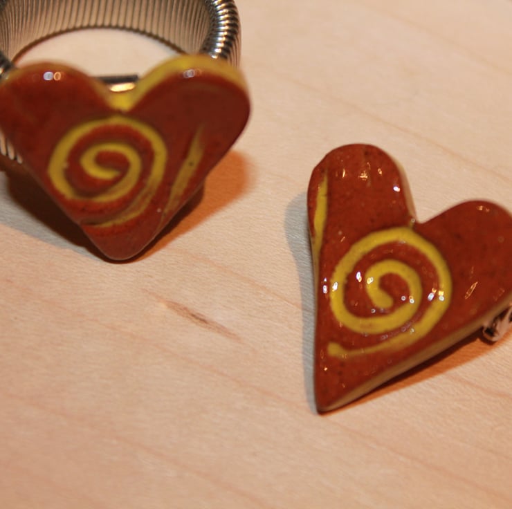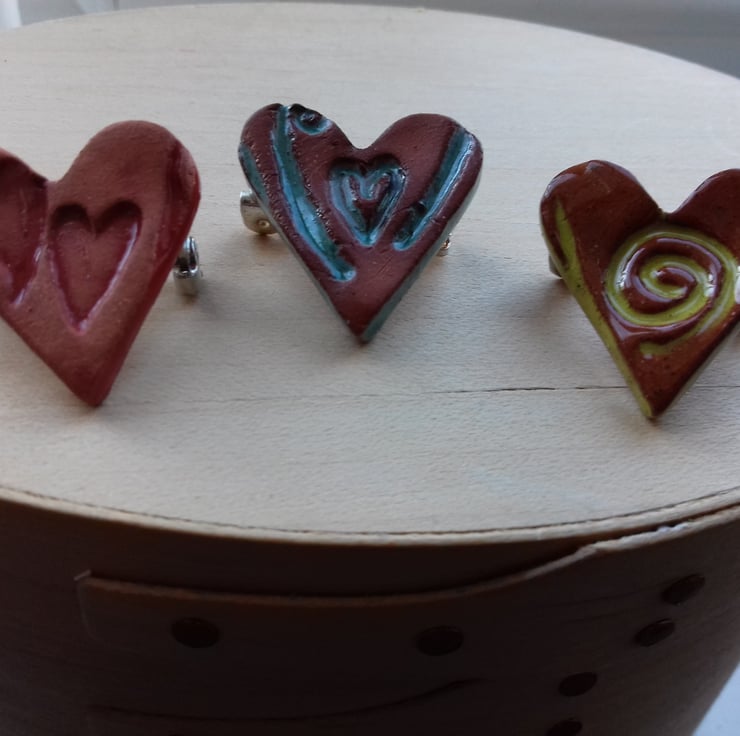 Handmade small heart brooch made from terracotta clay fired & then finished in glaze with small brooch pin on back.