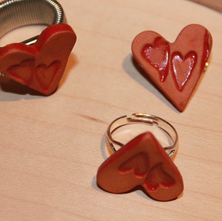 Terracotta & red colour with 2 small hearts design terracotta natural clay colour (no clear glaze on surface) PIC 3