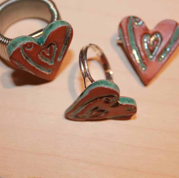 Terracotta & speckled green colour with small heart design terracotta natural clay colour (no clear glaze on surface) PIC 2