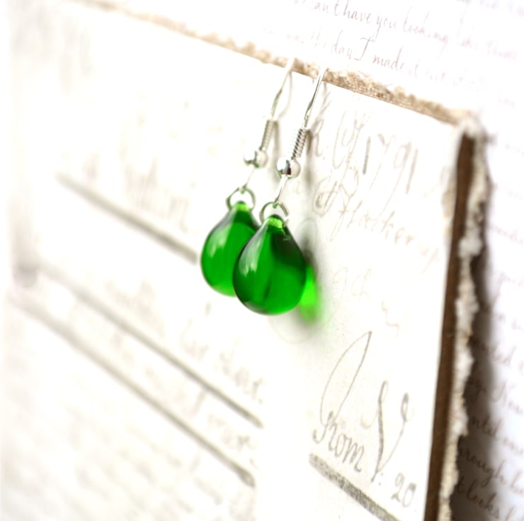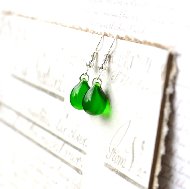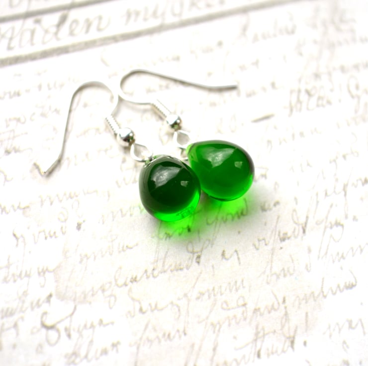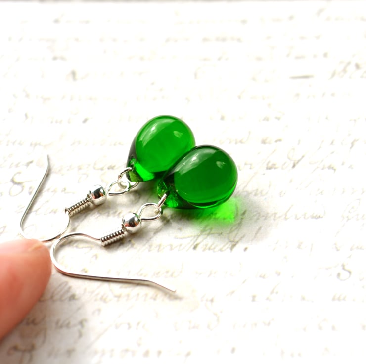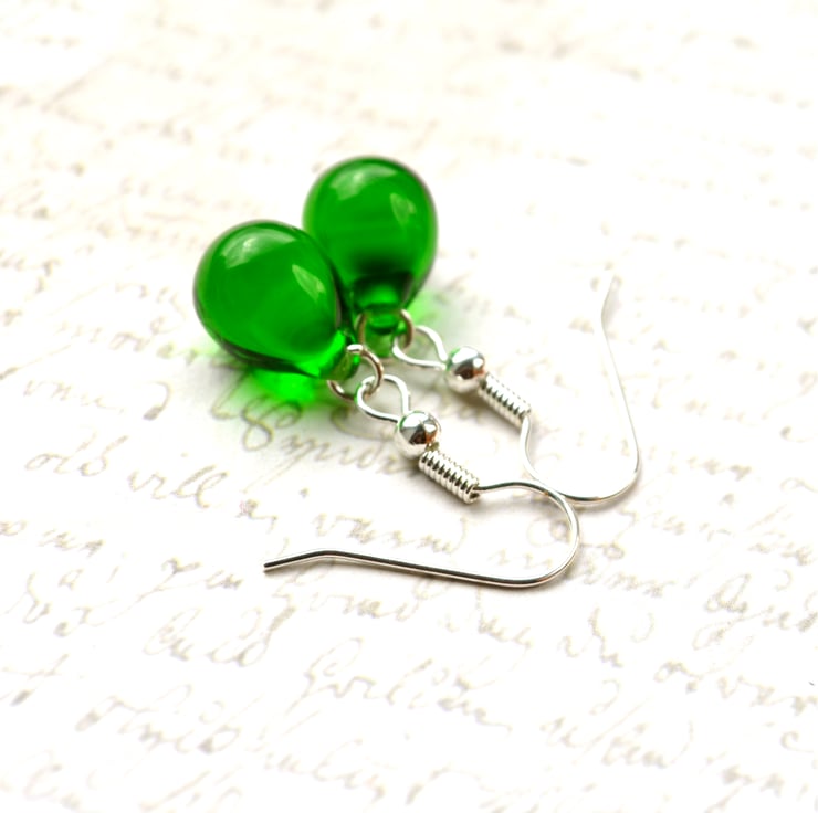 Little glass dangle earrings with lovely emerald green teardrop beads.