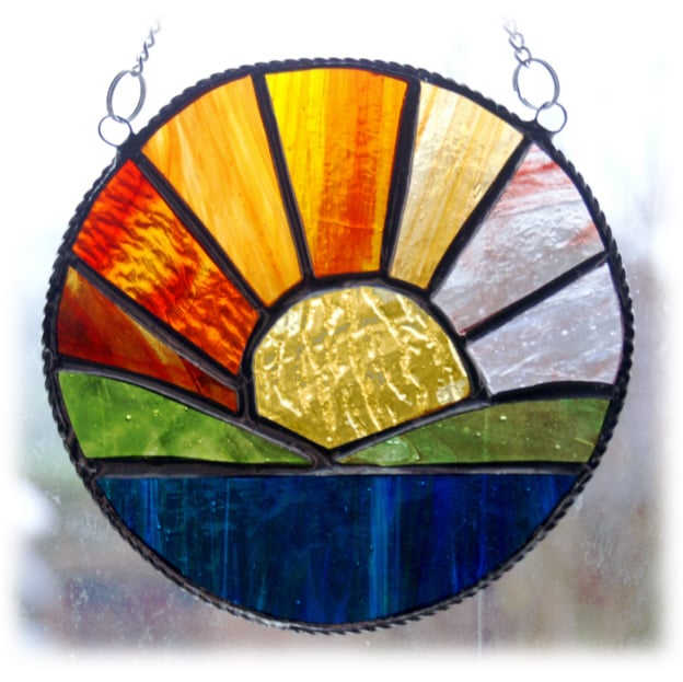This is a stained glass suncatcher made using the Tiffany copper foil technique.