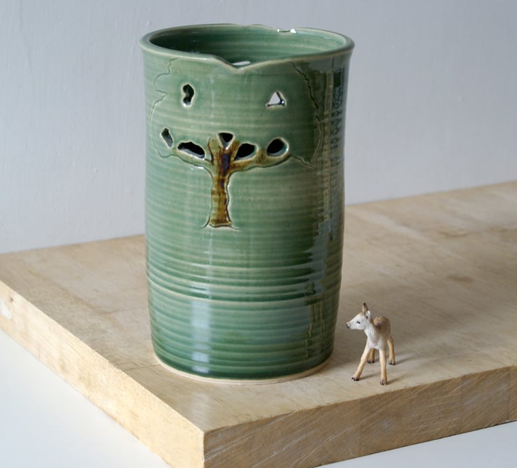 Stoneware pottery vase with green tree design. Handmade Stoneware Pottery by littlewrenpottery on Folksy.