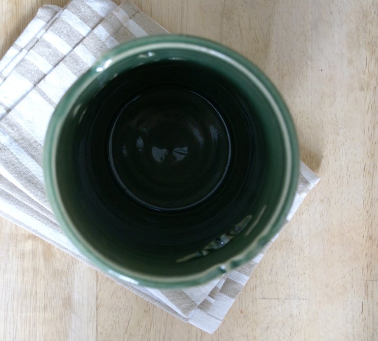 The vase has been glazed in a glossy forest green to give the tree it's green leaves.