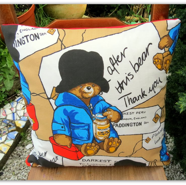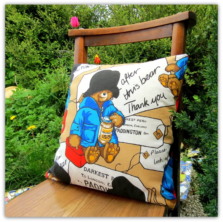 This is a 38cm x 38cm cushion, featuring Paddington Bear.