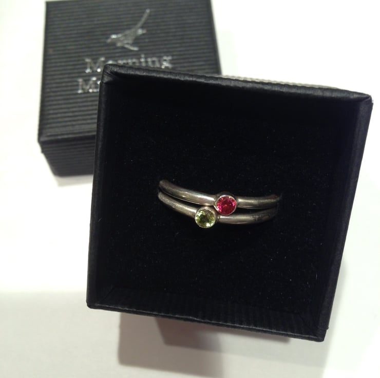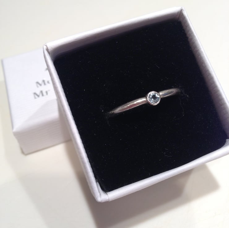 Handmade Sterling silver ring set with a 3mm gemstone of your choice. The ring is set in a tube with an open back which allows more light in for extra sparkle! This ring could be worn alone or as a stack with other coloured gems available to order.