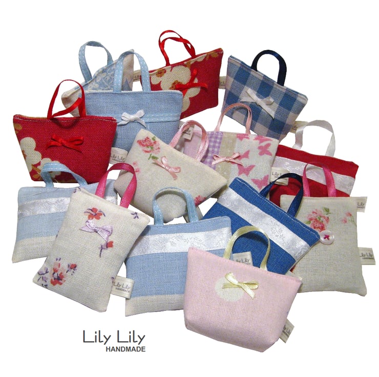 Cute handbag style lavender bags filled with gorgeously fragrant pure dried lavender. Lily Lily Handmade lavender bags are both decorative and fragrant, perfect for scenting drawers/wardrobes, for deterring moths naturally and for a soothing scent that can help induce sleep.