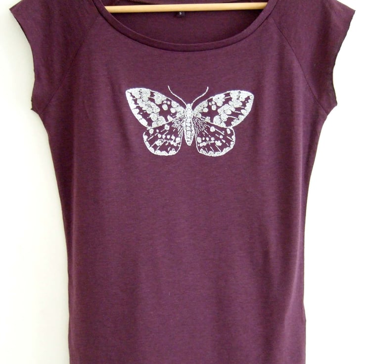 Silver Moth womens printed bamboo raglan T shirt  aubergine and silver