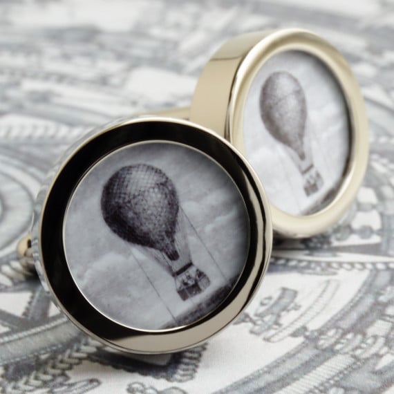 Vintage hot air balloon cufflinks with an image taken from a Victorian illustration. Like most of my cufflinks these can be customised, here with a change of background colour or style.