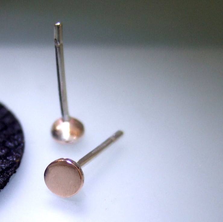 The head of the stud earring are made with a Japanese alloy of silver & copper called Shibuichi the posts on the earrings are sterling silver
