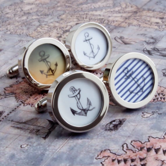Richly coloured vintage anchor cufflinks on a sepia and petrol blue faded background. These seaworthy nautical themed cufflinks are part of a range now available.