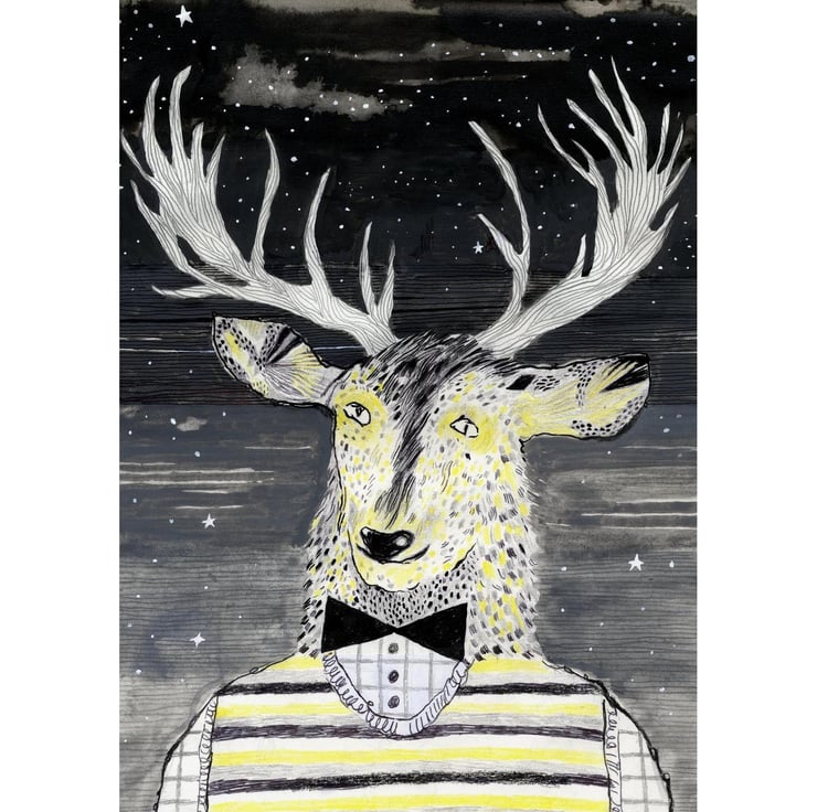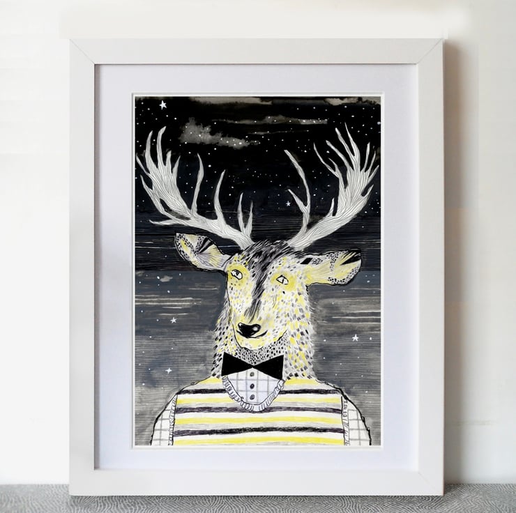 Here is an A3 Print (11.69 by 16.54 in) of The Golden Stag, inspired by the folk tale - and tanktops