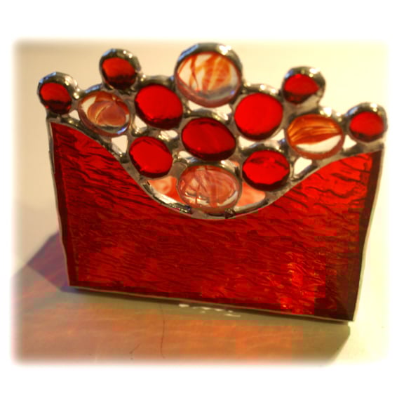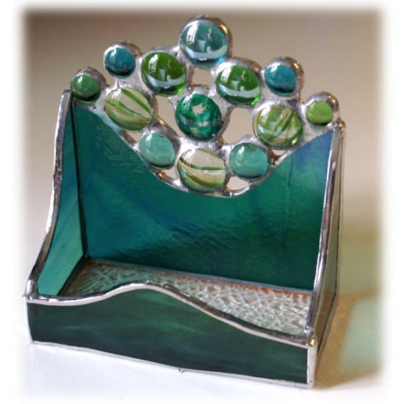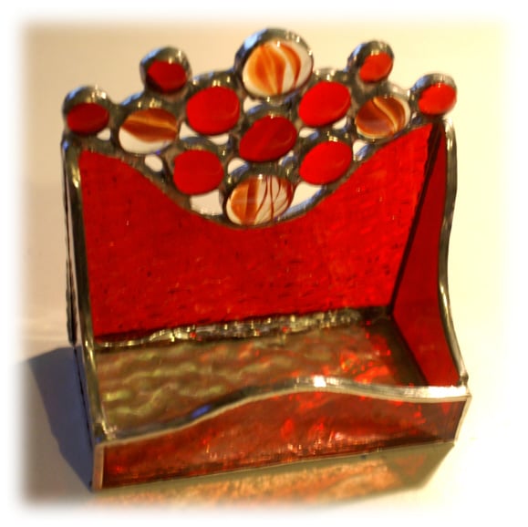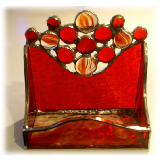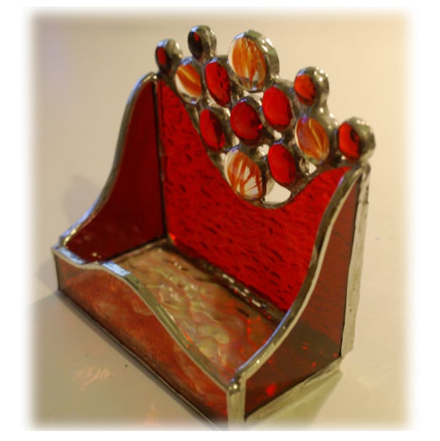 This is a business card holder handmade in stained glass using the Tiffany copper foil technique.