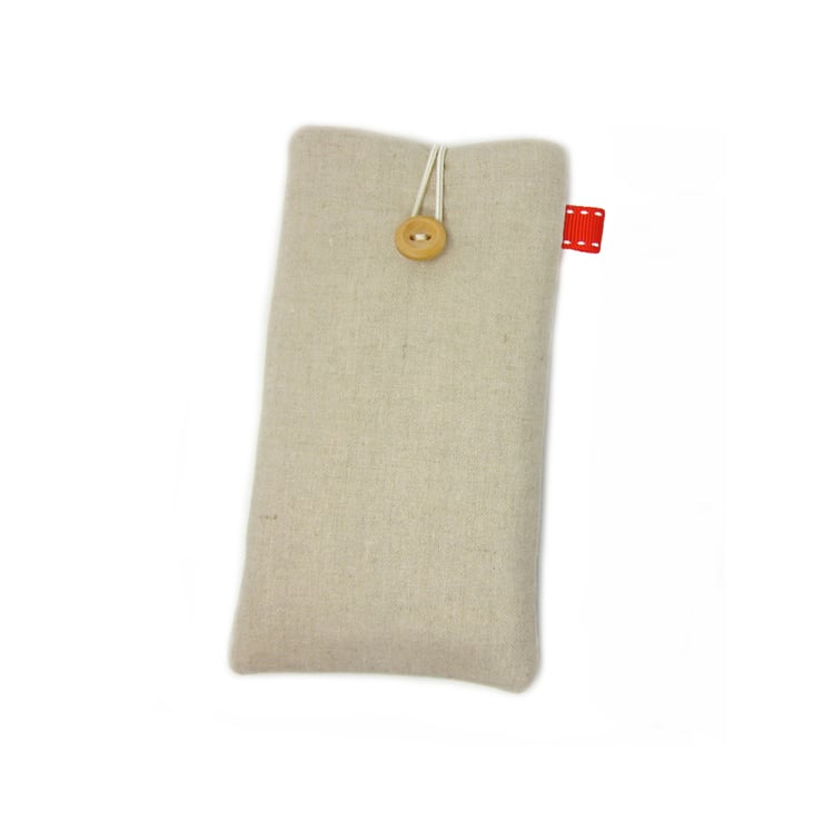 - Closes with a cream elastic loop and a wood button, keeping your device safely inside
