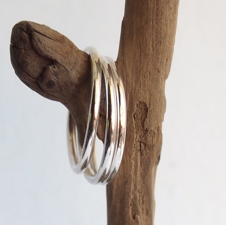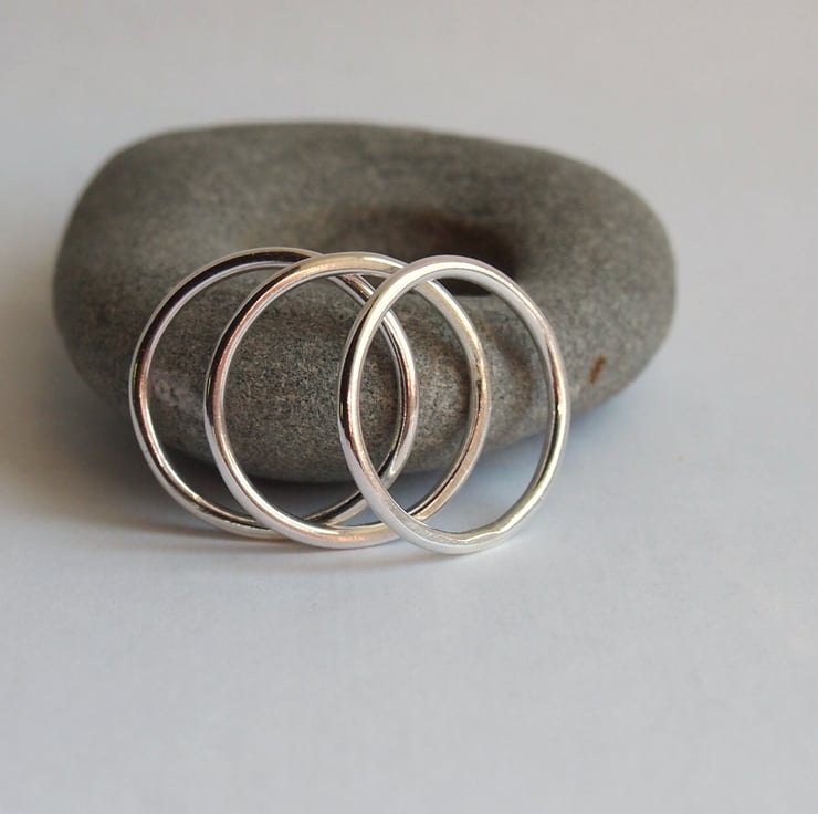 Perfectly plain and polished these slender rings are 1.5mm wide. They look great worn together or stacked with our other designs. Also available with a hammered texture - add a message at the checkout if you would like me to texture them for you.