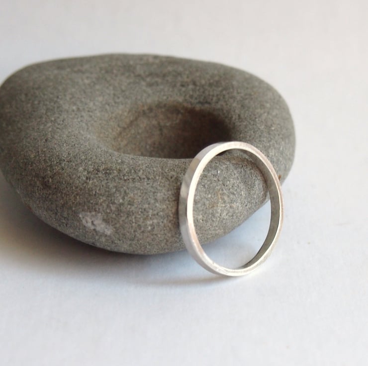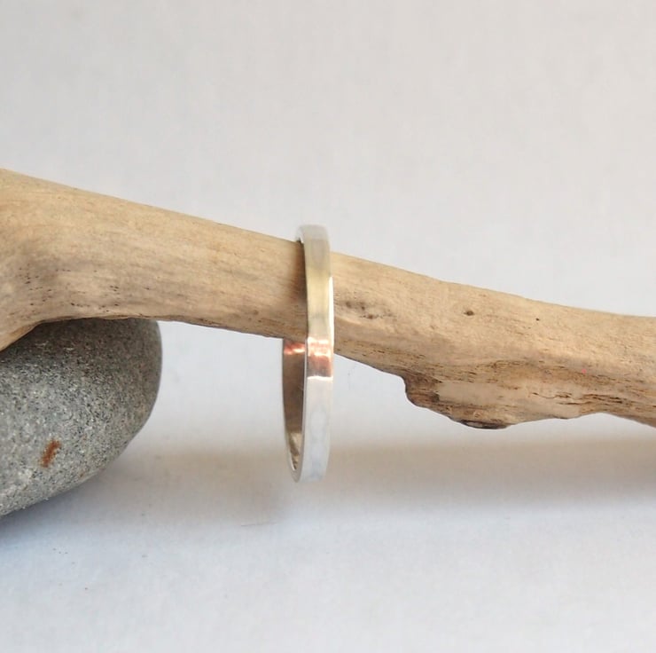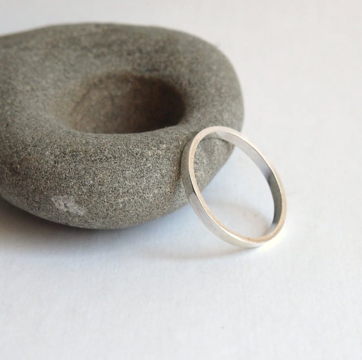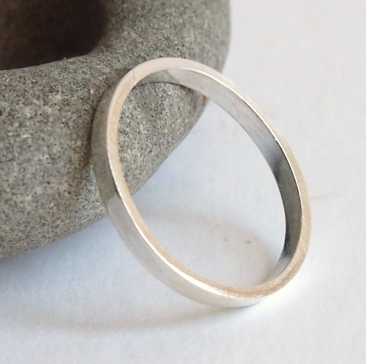 A simple polished ring made with 2mm deep and 1mm thick sterling silver sturdy enough to be worn every day.