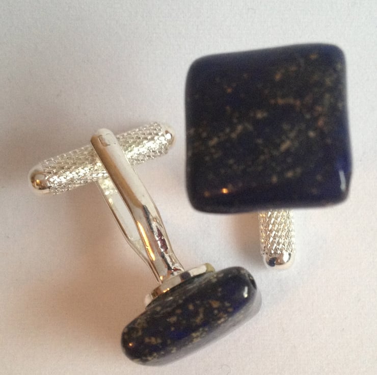 These cufflinks are made form 13mm lapis squares and will be giftwrapped in tissue paper and a black organza bag.