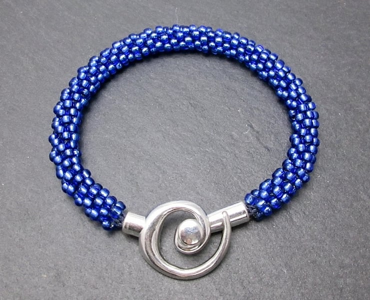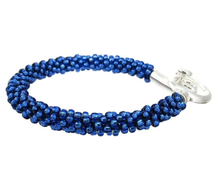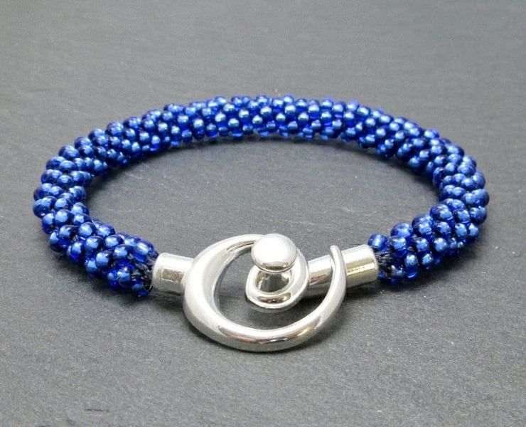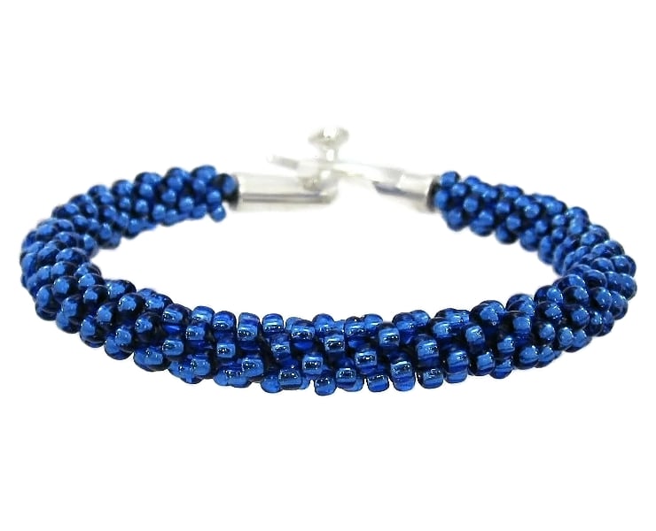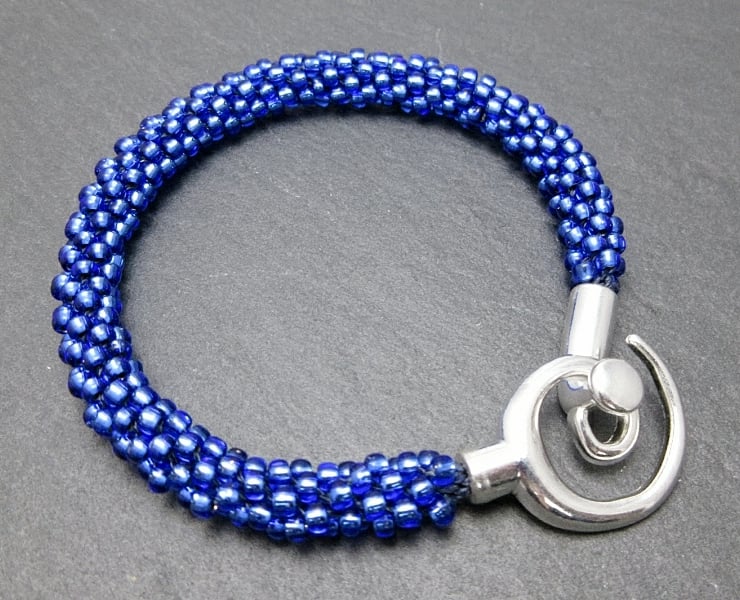 This handmade blue beaded Kumihimo bracelet has been designed using 3mm Toho glass seed beads.